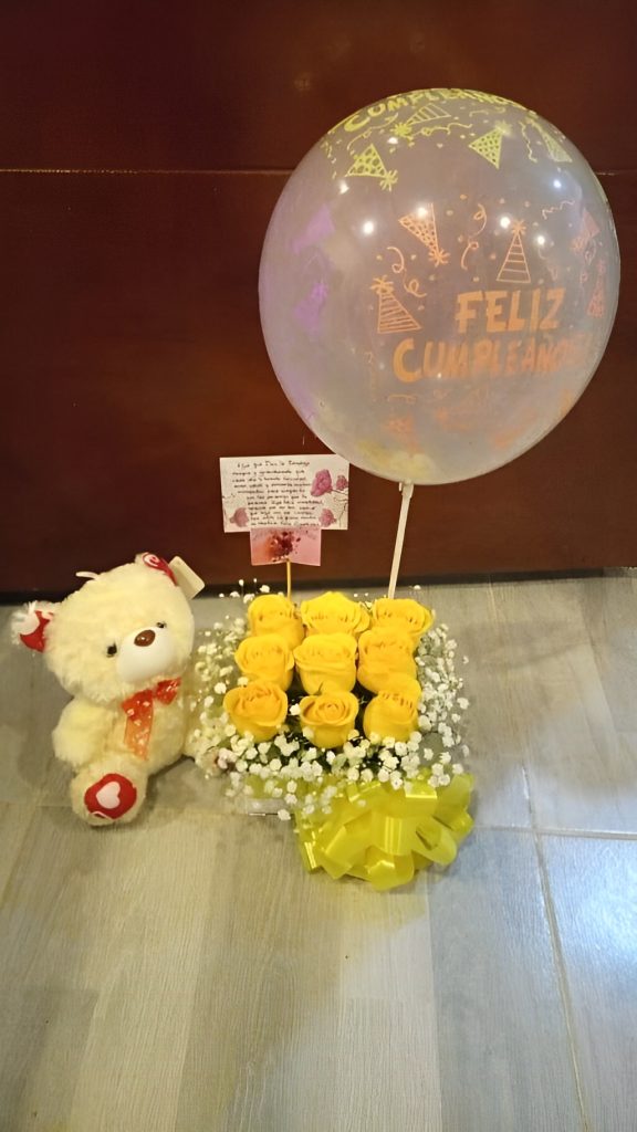 Flores con globos, Flores con peluche, Rosas